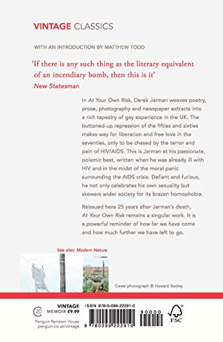 Details: With an introduction by Matthew Todd in at your own risk, Derek Jarman weaves poetry, prose, photographs and newspaper extracts into a rich tapestry of gay experience in the UK. The buttoned-up repression of the fifties and sixties makes way for liberation and free love in the seventies, only to be chased by the terror and pain of HIV/aids. This is barman at his passionate, polemic best, written when he was already ill with HIV and in the midst of the moral panic surrounding the aids crisis. Defiant and furious, he not only celebrates his own sexuality but skewers wider society for its brazen homophobia. Reissued here 25 years after jarman’s death, at your own risk