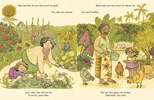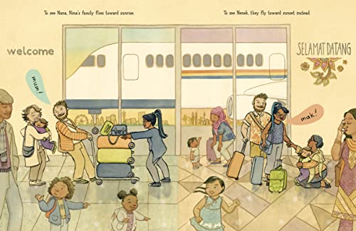 Nina lives in San Francisco with her parents, and she loves visiting her two grandmas across the world. Follow Nina as her two trips unfold side by side: Young readers will love poring over the details of what is the same and what is different at Nana’s home in England and at Nenek’s home in Malaysia. In each place, Nina wears different clothes, plays different games, and eats different food. But so much about visiting Nana and Nenek is the same, from warm hugs at the airport to beach days and bedtime snuggles. Nina is equally at home across the world in Malaysia or England, and both of her grandmas love her to California and back.