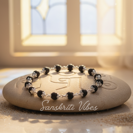 Silver Capping Black Shyama Tulsi Bracelet – Spiritual Elegance