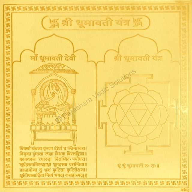 Arkam Dhumavati Yantra / Dhumawati Yantra - Gold Plated Copper - (6 x 6 inches, Golden)