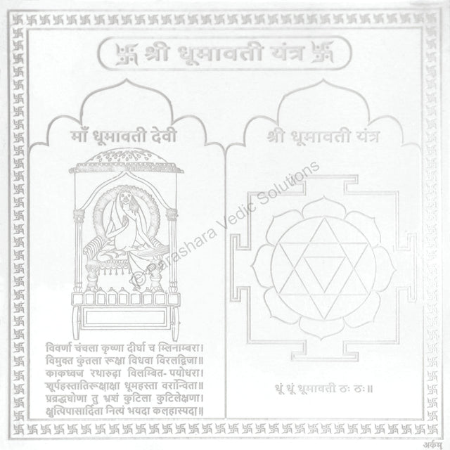 Arkam Dhumavati Yantra / Dhumawati Yantra - Silver Plated Copper - (6 x 6 inches, Silver) is backordered and will ship as soon as it is back in stock.