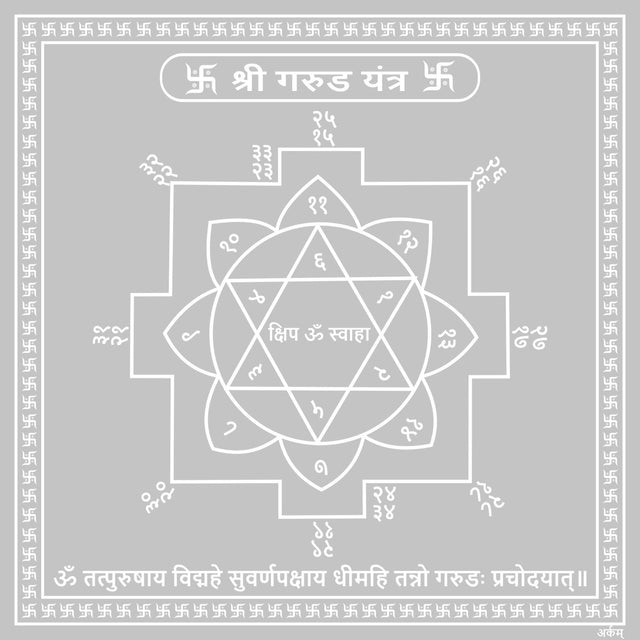The Arkam Garud Yantra is a sacred spiritual instrument crafted to bring protection, prosperity, and peace of mind. Made from premium silver-plated copper, it carries the divine energies of Lord Garud, the king of birds and sacred vehicle of Lord Vishnu. This yantra is highly effective in mitigating misfortunes caused by serpents, such as Sarpa Dosha and Shrapit Dosha, and provides relief from skin conditions including psoriasis, eczema, lupus, dermatitis, fungal infections, and rosacea.