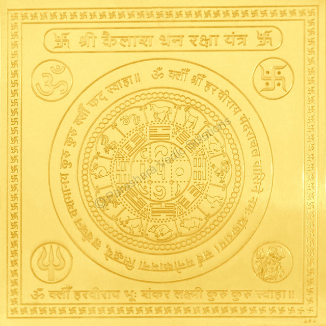 Arkam Kailash Dhan Raksha Yantra - Gold Plated Copper - (6 x 6 inches, Golden)