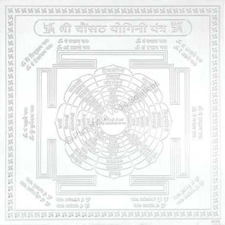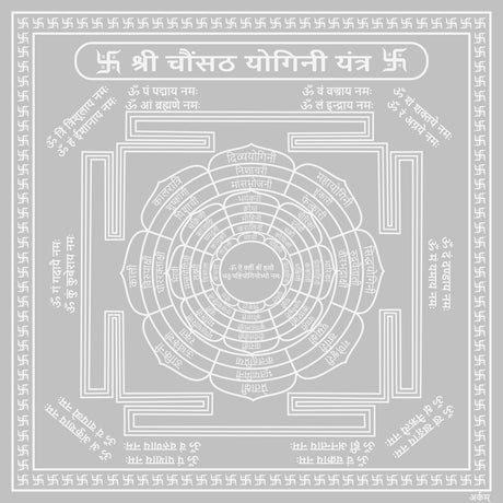 Arkam Chausath Yogini Yantra / 64 Yogini Yantra - Silver Plated Copper - (4 x 4 inches, Silver)