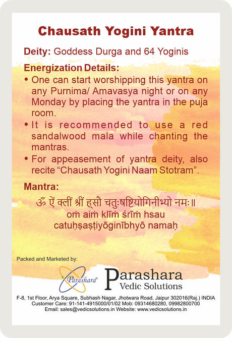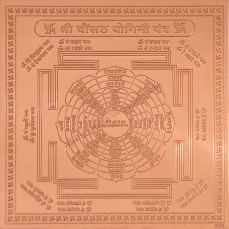 Arkam Chausath Yogini Yantra / 64 Yogini Yantra - Gold Plated Copper - (4 x 4 inches, Golden)