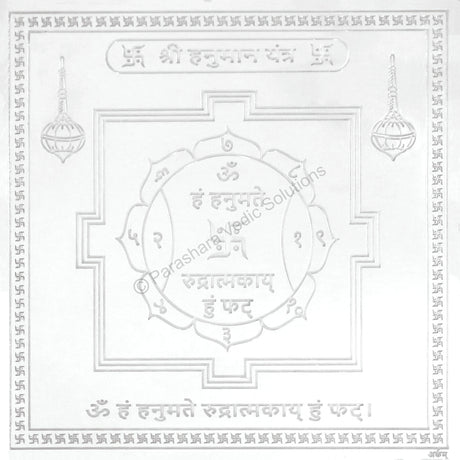 Arkam Hanuman Yantra - Silver Plated Copper - (6 x 6 inches, Silver)