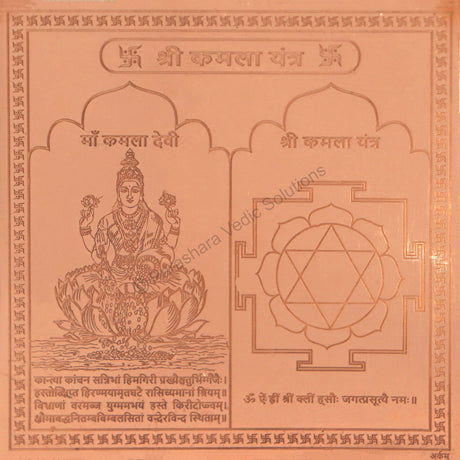 Arkam Kamla Yantra / Kamala Yantra - Copper - (4 x 4 inches, Brown)