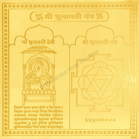 Arkam Dhumavati Yantra / Dhumawati Yantra - Gold Plated Copper - (4 x 4 inches, Golden)