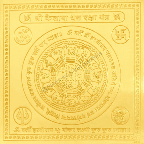 Arkam Kailash Dhan Raksha Yantra - Gold Plated Copper - (4 x 4 inches, Golden)
