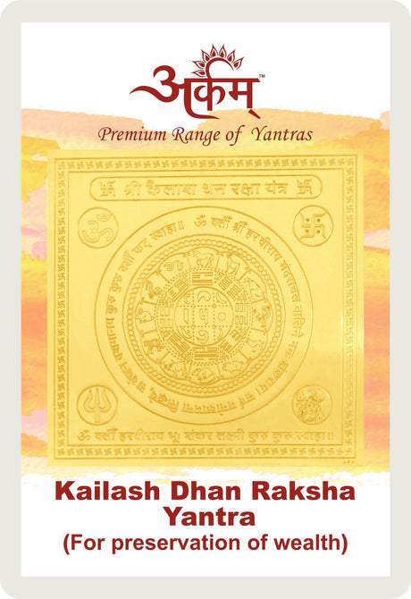 Arkam Kailash Dhan Raksha Yantra - Gold Plated Copper - (2 x 2 inches, Golden)