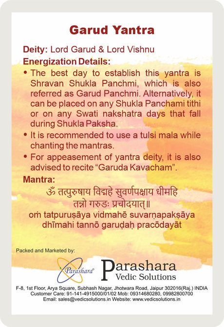 Arkam Garud Yantra / Garuda Yantra - Gold Plated Copper - (6 x 6 inches, Golden)