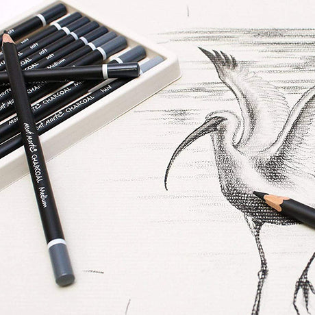 Mont Marte Charcoal Pencil Set of 12 – Soft, Medium & Hard Drawing Pencils
