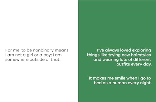 This is a kids book about non-binary identities. But what does being non-binary mean? For some people, the question and its answer may be new or a little confusing. It's okay to not know what it means! That's where all good conversations start. The journey to understanding starts with an open mind and an open heart.
