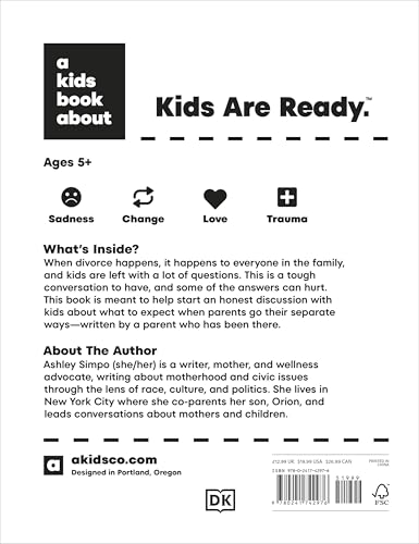 A Kids Book About Divorce features: A large and bold, yet minimalist font design that allows kids freedom to imagine themselves in the words on the pages. A friendly, approachable, empowering, and child-appropriate tone throughout. An incredible and diverse group of authors in the series who are experts or have first-hand experience of the topic.