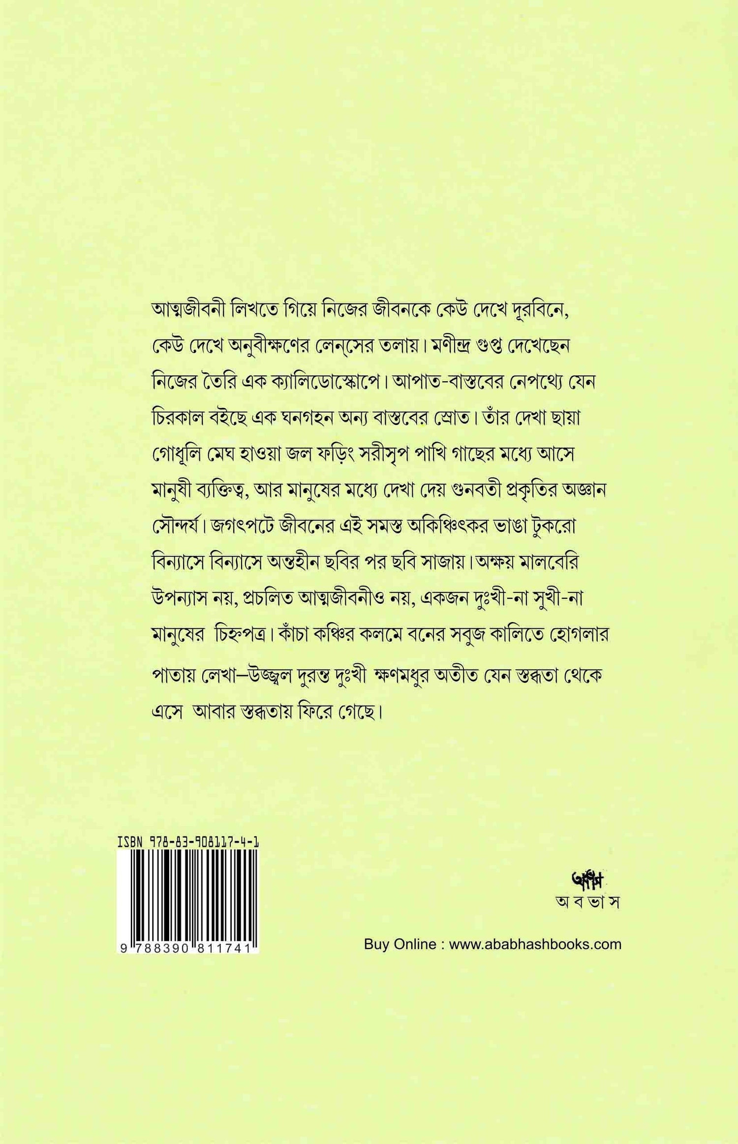 Regarded as one of the most remarkable autobiographies in Bengali literature, Akshay Mulberry (Akhanda) presents an intensely sensitive exploration of a life shaped by both physical surroundings and inner psychological landscapes.