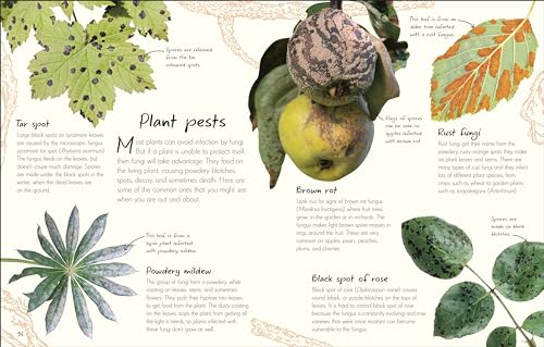Children can marvel at many different toadstool species including fly agaric, porcelain fungus, velvet shank, wood blewit, and crimson waxcap, as well as lichens, brackets, and more – all beautifully detailed through illustrations, photographs, and annotations explaining each one.