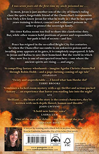 It's when the Chancellor succumbs to an unknown poison and an army lays siege to the city that the siblings' world begins to truly unravel. Trapped and desperate, they soon discover that the society into which they were born and grew up also possesses two faces - for behind the sophistication and the beauty lies an ugly truth - this is a world built on oppression and treachery . . .