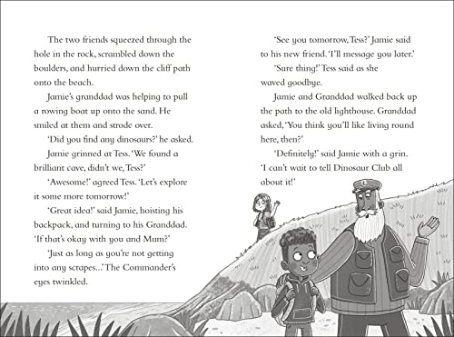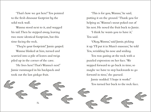 Jamie is exploring Ammonite Bay when he meets Tess. Tess is a member of Dinosaur Club who lives in Ammonite Bay too. She shows Jamie around, including her favourite place - a secret cave with fossils all over the walls. But what's that strange tunnel at the back? Together they go through the tunnel and they discover some dinosaur footprints. Jamie and Tess walk along them...and the two new friends find themselves back in the time of the dinosaurs! It's amazing, but dangerous too - and they'll definitely need help from the Dinosaur Club...