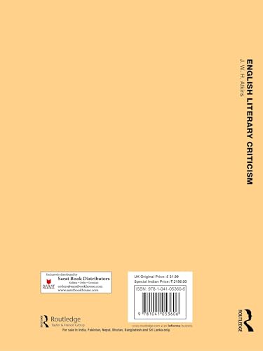 Originally published in 1951, this volume examines the transitional period between Renaissance influence and the emergence of 19th Century Romanticism. It analyzes the theories and judgments of various literary critics and their impact on literary appreciation. The opening chapter focuses on French 17th Century doctrines, providing essential background for English critical activity over two centuries. Subsequent chapters explore the key developments and highlight significant critics during this transformative era.