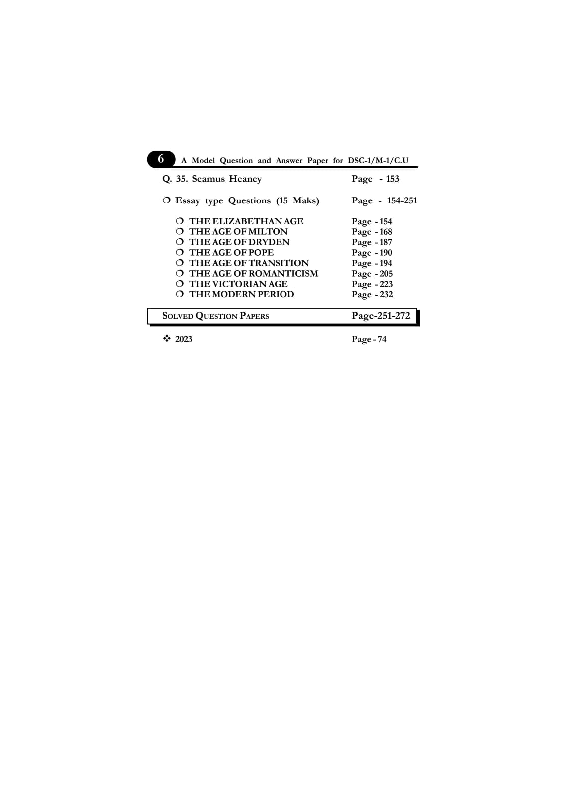 ENGLISH LITERATURE (POETRY) DSC-1/M1 (V-2), MODEL Q&A, SEM-1, C.U. (English Version)