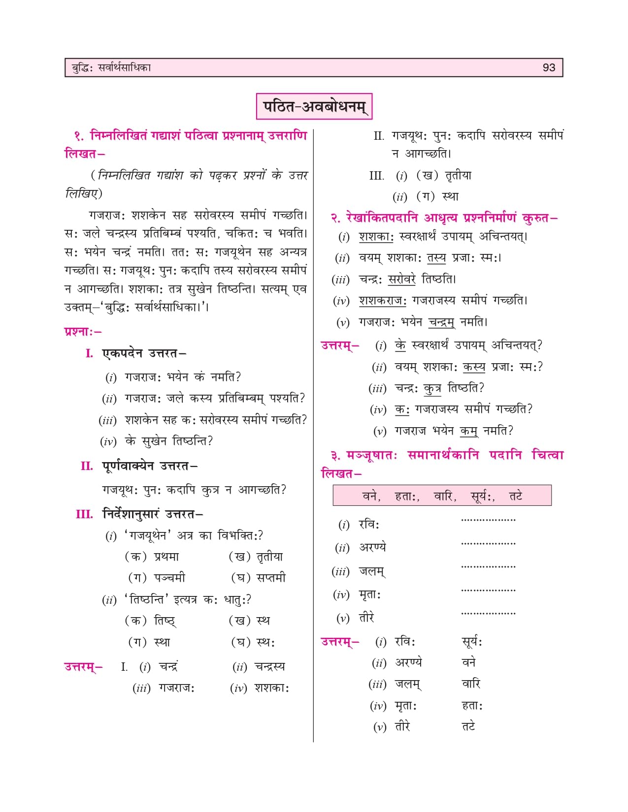 📑 Pathasarah 📖 Mulpathah, Anvayah, Shabdarthah, Saralaarthah 📝 Abhyas-Karyam 🔍 Pathit - Avbodhanam 🧠 Apathit-Avbodhanam ✍️ Lekhan - Karyam 🔤 Vyakaranam 🔘 Bahuvikalpiyaprashnah 🎯 Vastunishth Prashnah ✅ Bahuvikalpiya Prashrottarani ⬜️ Riktasthanani Purayat