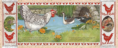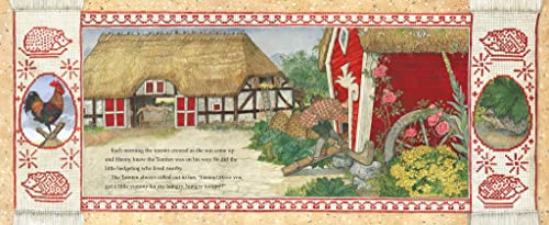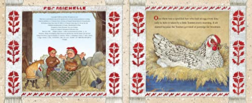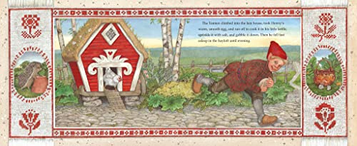 Details: Jan Brett's beloved character Hedgie stars in this charming story about a little Tomten who gets tired of porridge for breakfast and starts stealing Henny's eggs. But Henny wants a brood of chicks and she needs her eggs. With the help of clever Hedgie, she substitutes an acorn, a strawberry, a mushroom and finally a potato in her nest. But nothing stops that Tomten until the little hedgehog hides in Henny's nest: when the Tomten reaches in to get his morning treat, all he gets is a handful of prickles. He runs home for porridge and never comes back again! Intricate needlepoint patterns of Scandinavian designs frame the characters reacting from the borders in this beautiful picture book set in Denmark.
