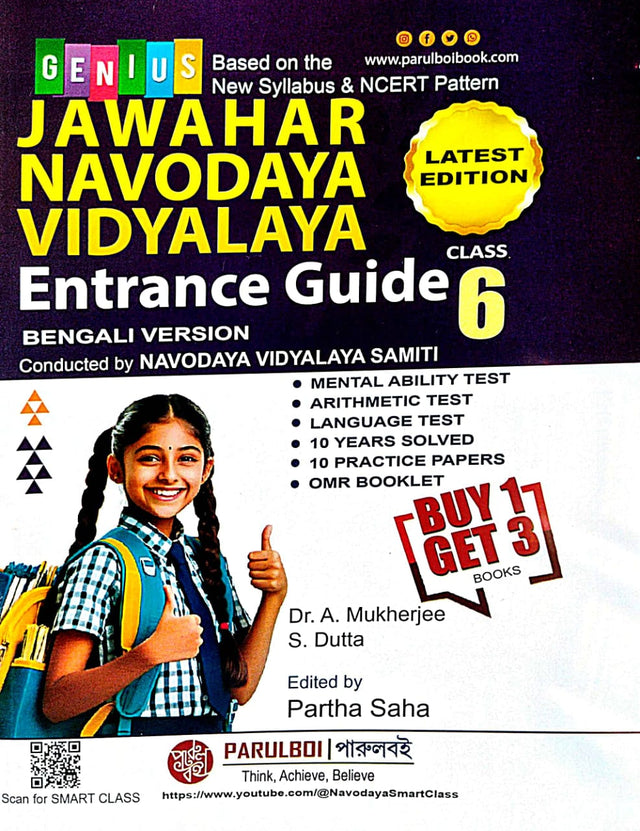 Jawahar Navodaya Vidyalaya Entrance Guide (Bengali Version) is the ultimate resource for Class 6 students aiming to secure admission into Jawahar Navodaya Vidyalayas. Based on the latest syllabus and NCERT pattern, this book provides a thorough preparation guide that includes practice tests in Mental Ability, Arithmetic, and Language. It features 10 years of solved papers and 10 practice papers, making it a comprehensive tool for exam preparation. Edited by Partha Saha, this edition is designed to offer students ample practice and the necessary skills to excel in the entrance exam. Additionally, it includes an OMR booklet for practice and offers a special "Buy 1, Get 3" promotion.