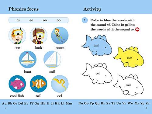The Big Fish, a Starter level Reader, introduces phonics and sight words. Each book contains two versions of the story: the first with single words focusing on phonics, with the emphasis on letter recognition and pronunciation; the second with short sentences introducing sight words.
