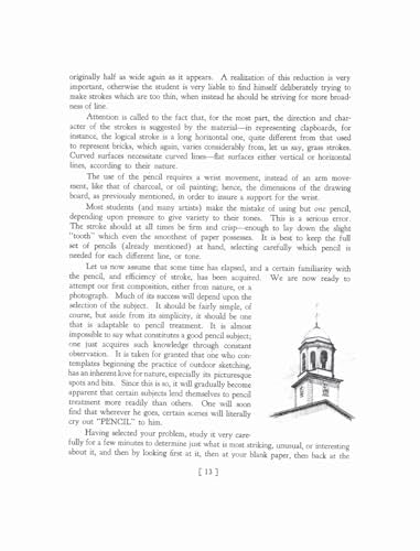 Details: Concise and beautifully illustrated, this guide provides invaluable instruction on the art of pencil drawing. It covers the basics of holding the pencil, applying different strokes, shading, perspective, and the rendering of different textures, as well as the finer points of pictorial composition and drawing from nature.Based on the author's years of experience teaching art students at all levels, this book is ideal for home or class use. Its thirty-six evocative sketches range from English castles to American bridges, with a few detailed close-ups showing how to surmount some of the problems of depicting rocks, roofs, standing water, or leafy tree branches. The accompanying text describes how artists at every level of experience can develop their own pencil technique by employing fundamental rules.