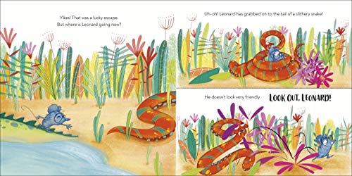 As poor little Leonard finds his way through the rainforest, he narrowly avoids catastrophe at every turn, encountering snippy-snappy crocodiles, cross snakes, angry baboons and even grabs a flying parrot's tail! Will Leonard make it safely to the end of their journey?
