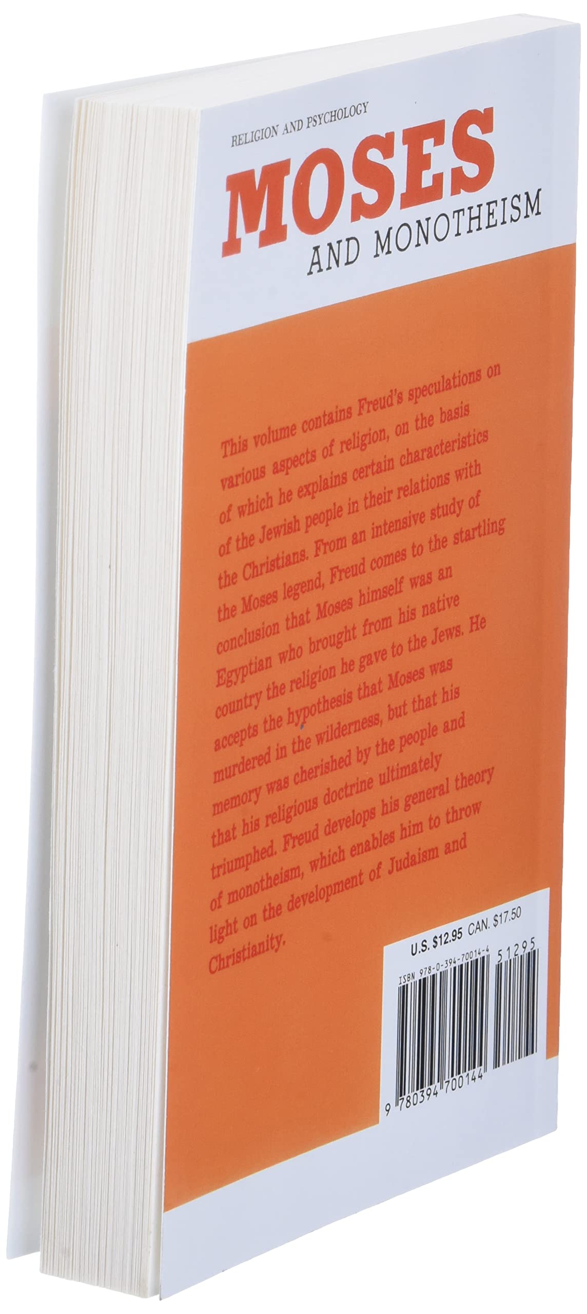 Details: This volume contains Freud’s speculations on various aspects of religion, on the basis of which he explains certain characteristics of Jewish people in their relations with Christians. From an intensive study of the Moses legend, Freud comes to the startling conclusion that Moses himself was an Egyptian who brought from his native country the religion he gave to the Jews. He accepts the hypothesis that Moses was murdered in the wilderness, but that his memory was cherished by the people and that his religious doctrine ultimately triumphed. Freud develops his general theory of monotheism, which enabled him to throw light on the development of Judaism and Christianity.