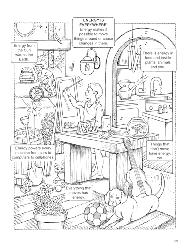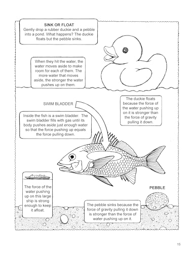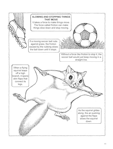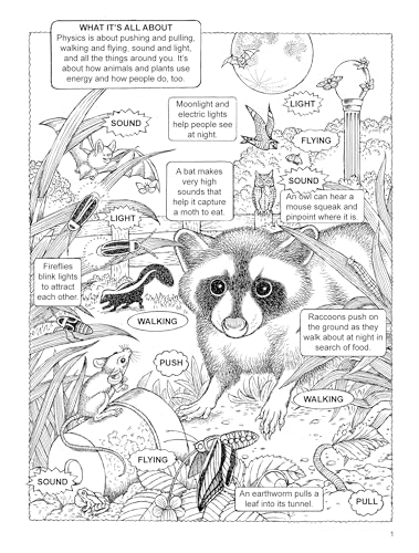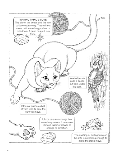 Find out how things move, how you see and hear, what electricity is, and what's inside an atom. These 46 detailed, full-page illustrations with easy-to-understand captions will introduce you to the most basic concepts of physics, using memorable examples drawn from nature.
