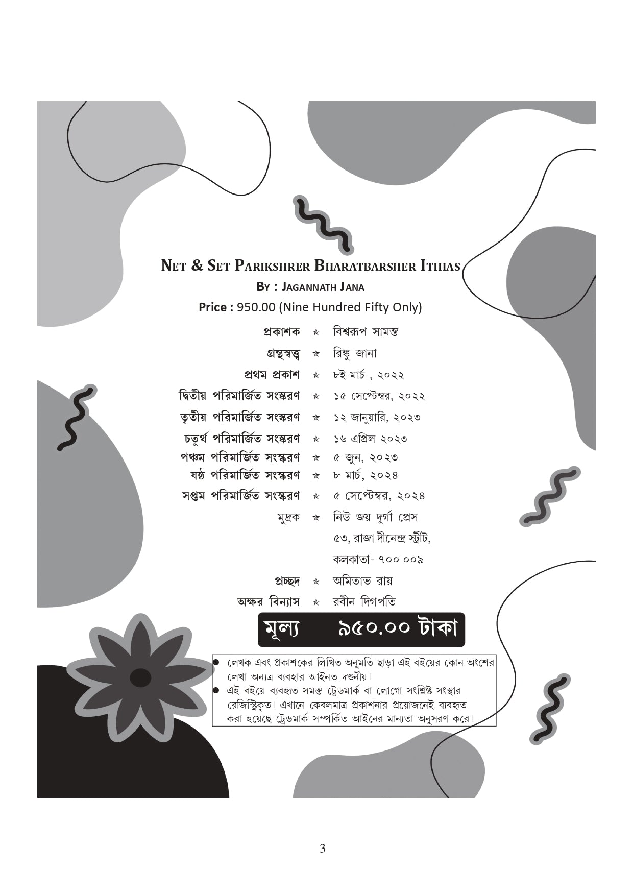 "NET & SET Bharater Itihas" by Jagannath Jana is a comprehensive study of Indian history, specifically designed for students preparing for the NET (National Eligibility Test) and SET (State Eligibility Test) exams. The book is written in Bengali, making it accessible to a broader audience in West Bengal and other Bengali-speaking regions.