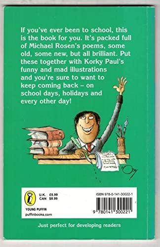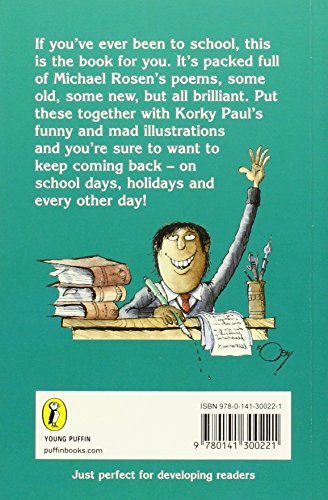 Details: A collection of poems about school and friends - some familiar favourites and some brand new poems to excite young readers. Michael Rosen's humorous insights into children's lives make this a wonderfully accessible collection, with full colour illustrations by the irrepressible Korky Paul.