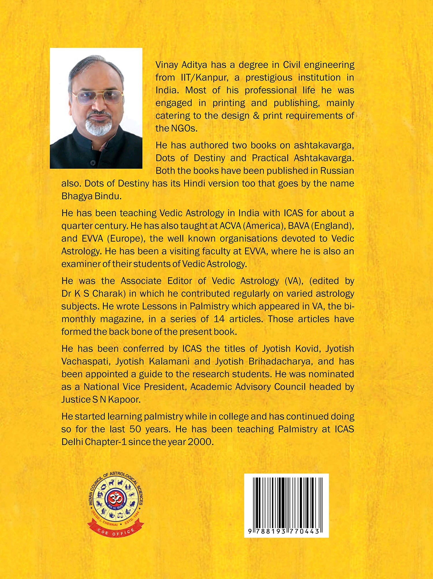 Vinay Aditya: Has a Bachelor’s degree in Engineering from an IIT. For his livelihood he ran a Design Studio catering to the print requirements of NGOs. He has been learning, teaching and practicing Palmistry for the last 50 years. He also teaches Vedic Astrology with Indian Council of Astrological Sciences (ICAS), in Delhi. He is a Visiting Faculty of some organizations that hold annual seminars devoted to Vedic Astrology in USA and Europe. Besides being a National Vice President he has been honoured with several titles by ICAS, India.