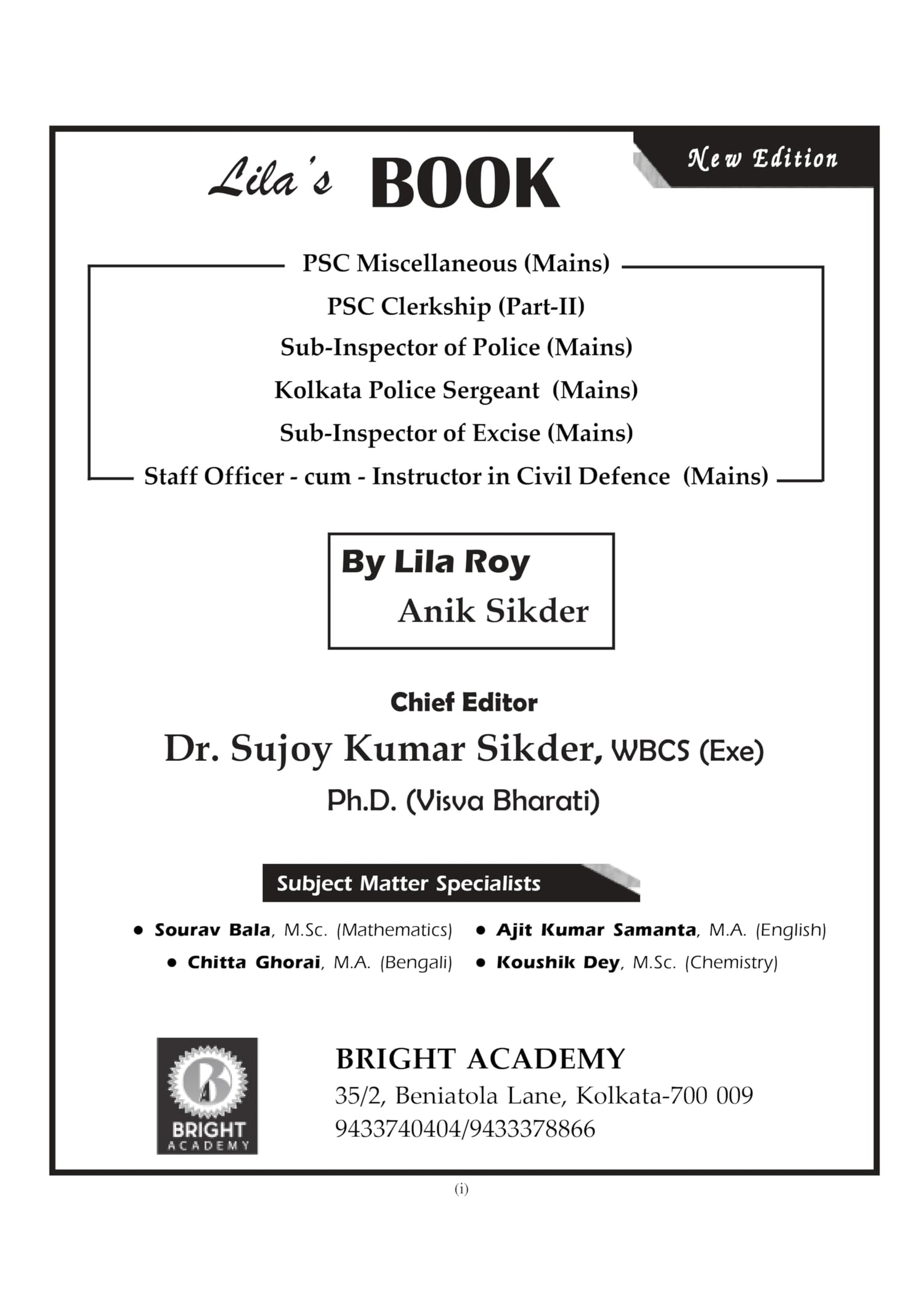 The PSC Miscellaneous & PSC Clerkship (Mains) 2024-25 (Bengali Version) by Lila Roy is a comprehensive guide tailored for aspirants preparing for the West Bengal PSC Miscellaneous and Clerkship (Mains) examinations. This book is designed to provide detailed subject-wise coverage, practice sets, and in-depth explanations to enhance candidates' preparation.