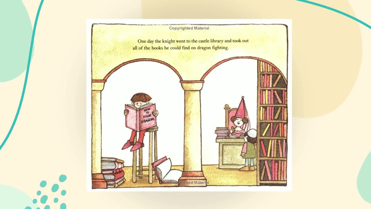 Details: What happens when a sheepish knight and a not-so-fierce dragon fight for the very first time? Well, it's no ordinary battle since the knight has to go to the castle library to learn about dragon-fighting and the dragon must dig through his ancestor's things to find out how to fight a knight! "Spontaneity of line and feeling are backed by zesty colors and a jovial, tongue-in-cheek tone to which children can relate—a top springtime choice." —Booklist "There's a swirl of good-humored life to the book." —The New York Times Book Review