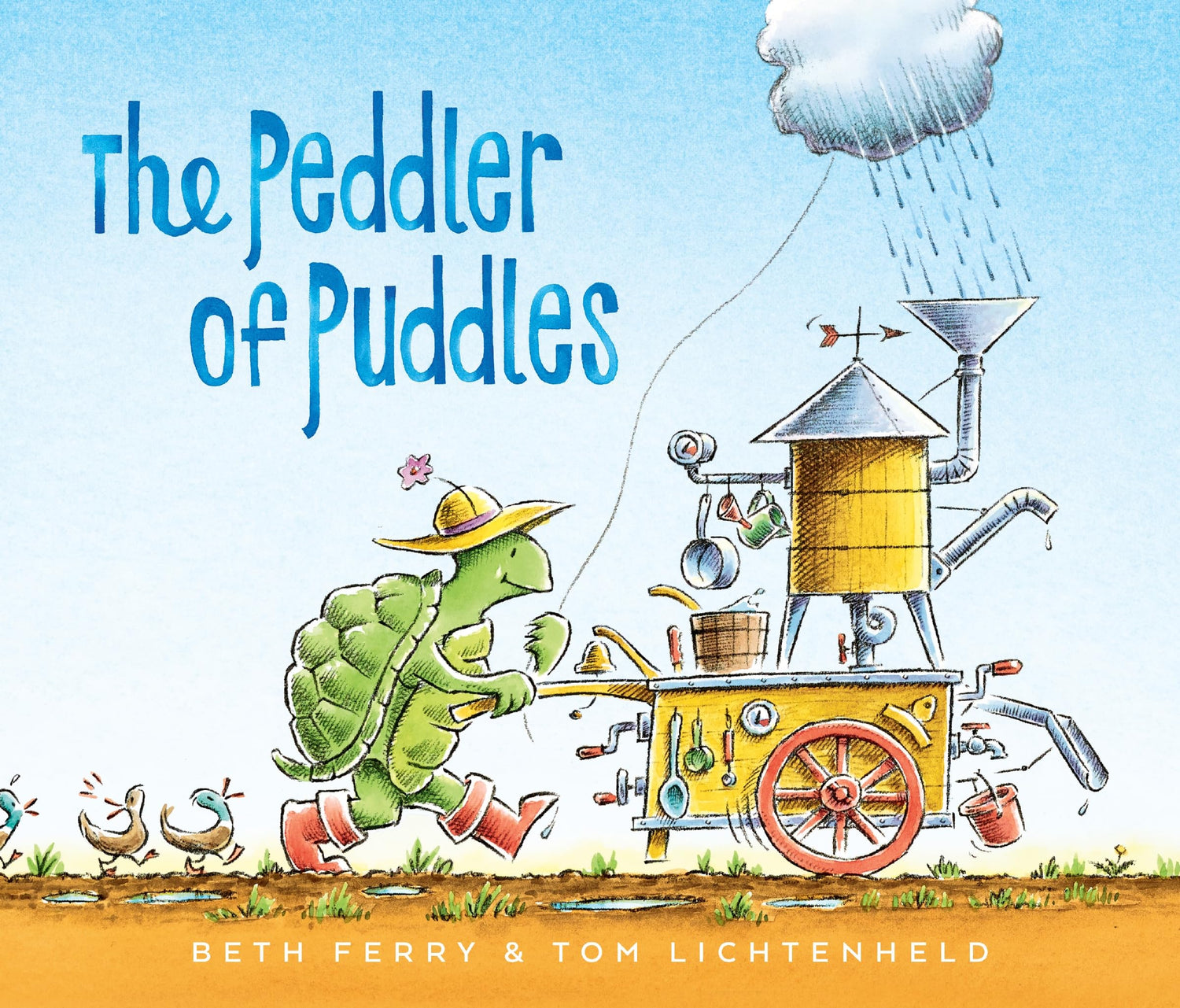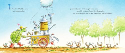 The Peddler travels the countryside making perfect puddles for all his forest friends. Puddles that delight ducks, refresh frogs, and satisfy even the thirstiest hummingbird. But being constantly on the go can be lonely, and it's not until his friends step in that the Peddler discovers the joys of a home sweet home of his own.